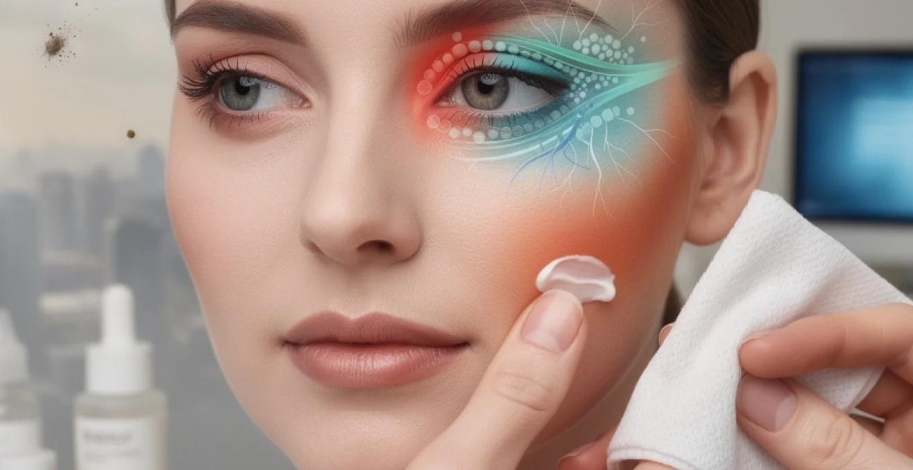 La pollution atmosphérique, en particulier les particules fines PM2.5 et les composés organiques volatils (COV), constitue un facteur aggravant bien documenté des irritations oculaires. Ces particules microscopiques se déposent facilement sur la surface de l’œil et le contour des paupières, où elles induisent un stress oxydatif important. Les cellules épithéliales libèrent alors des radicaux libres et des cytokines pro-inflammatoires, responsables de brûlures, de rougeurs et de sensations de tiraillement autour des yeux. Dans les grandes villes, cette exposition est quasi permanente, ce qui explique la fréquence des complaints de « yeux qui brûlent » en fin de journée.